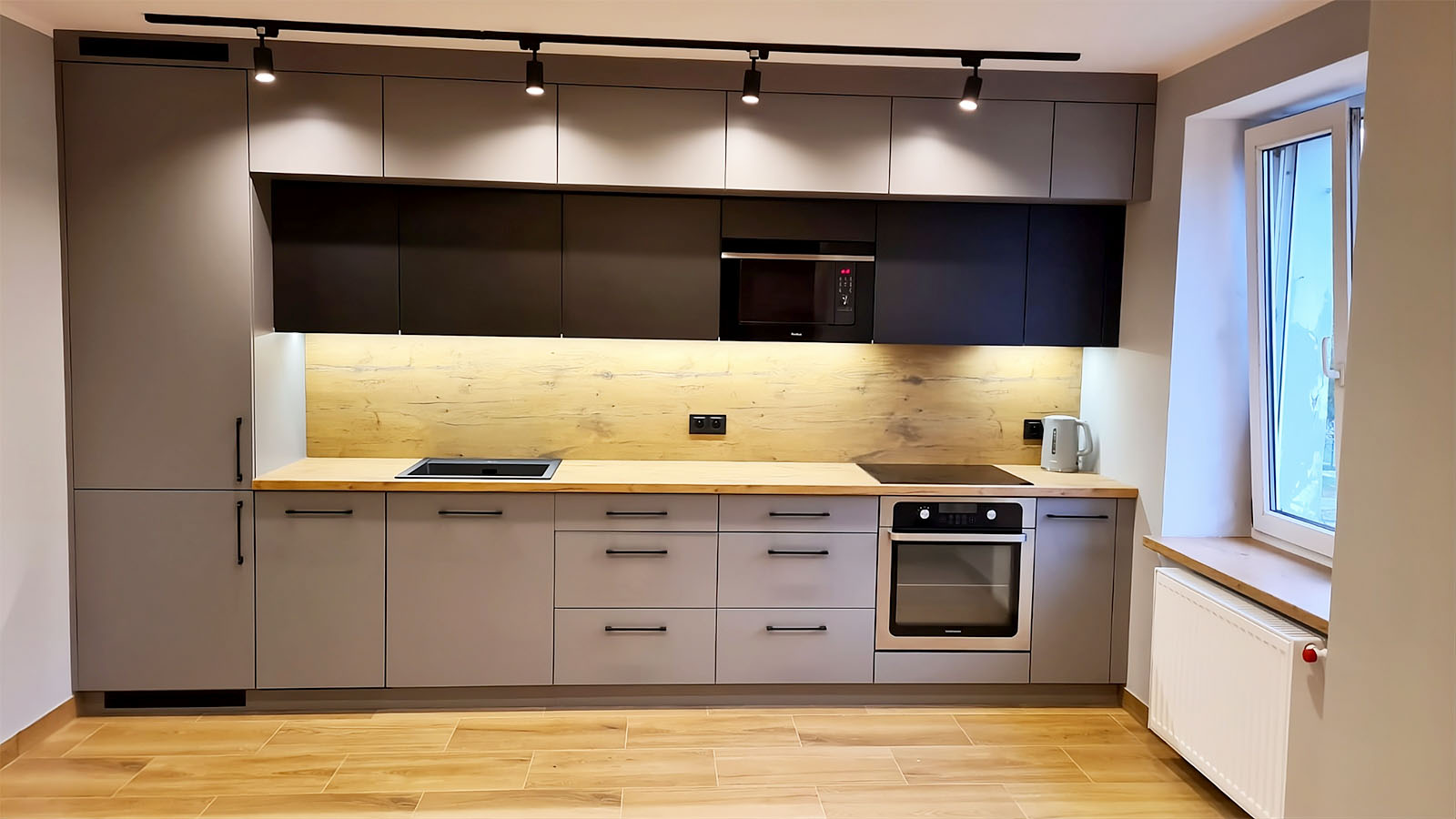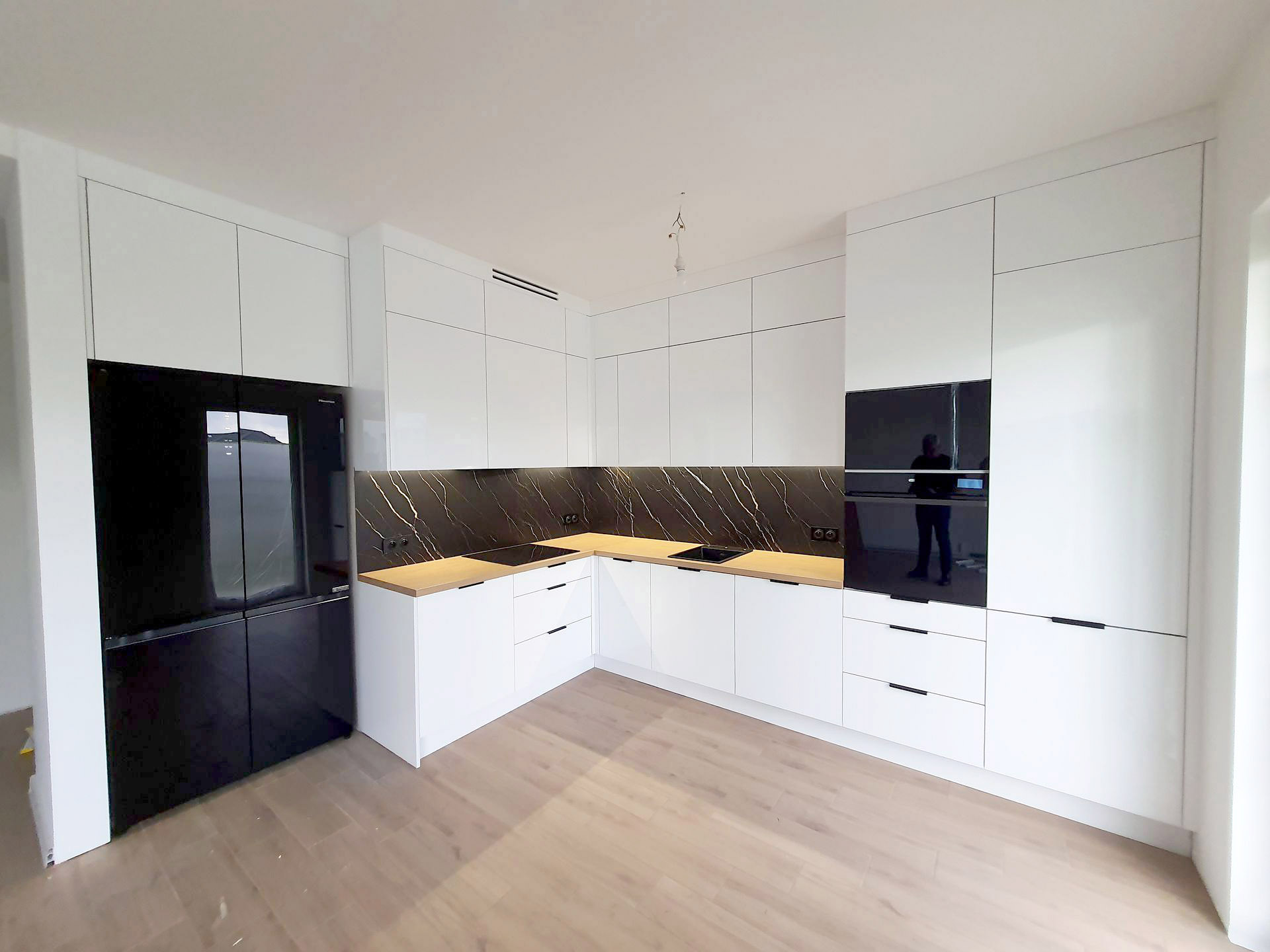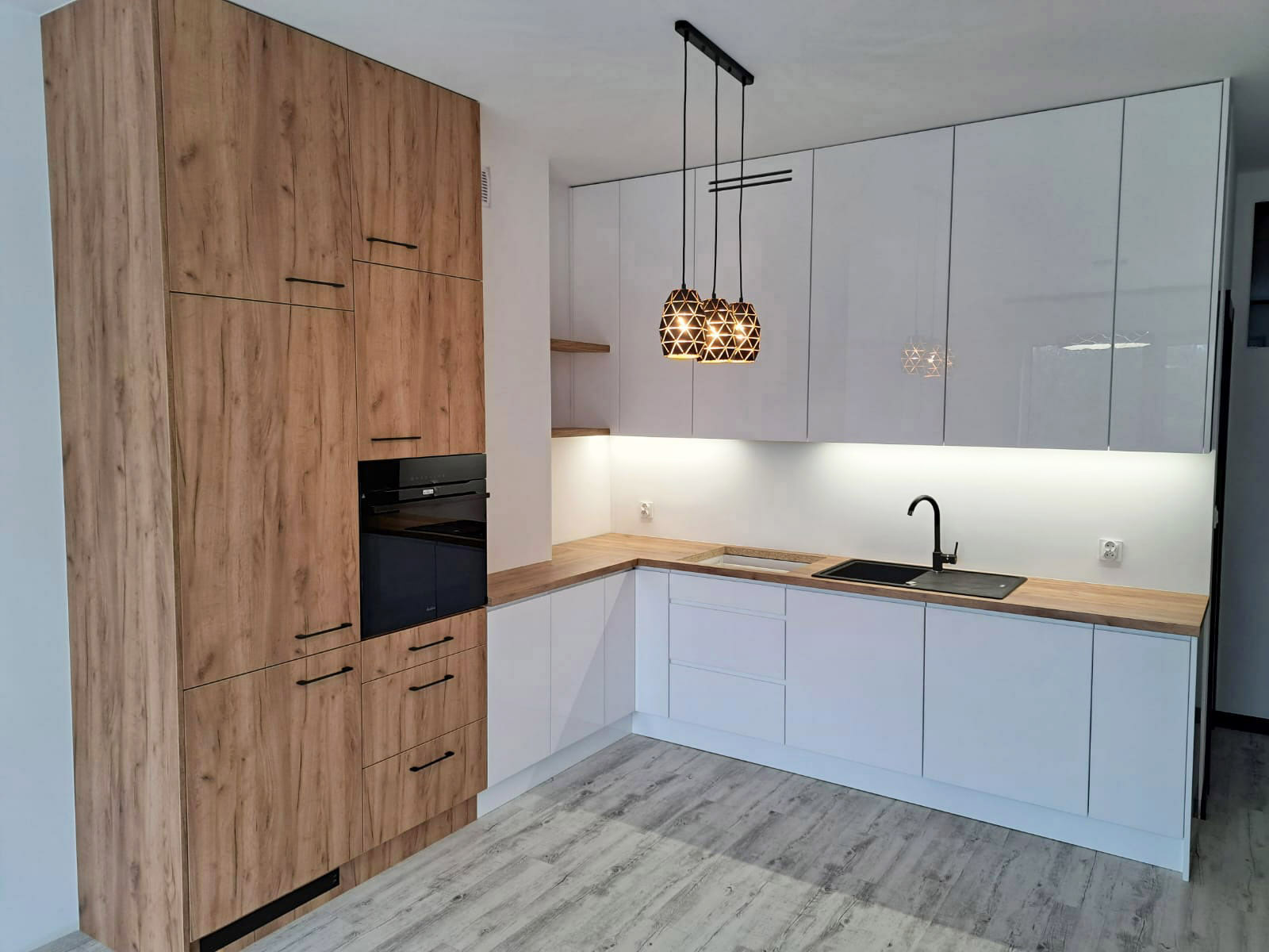 Kuchnia na wymiar mimo totalnej zmiany koncepcji wyszła funkcjonalna i piękna. Pan Krzysiek podpowiedział dlaczego nasze wstępne założenia nie były do końca rozsądne i za to bardzo dziękujemy, bo byśmy się wkopali z tak małym blatem roboczym. Wyszło super! Polecamy!