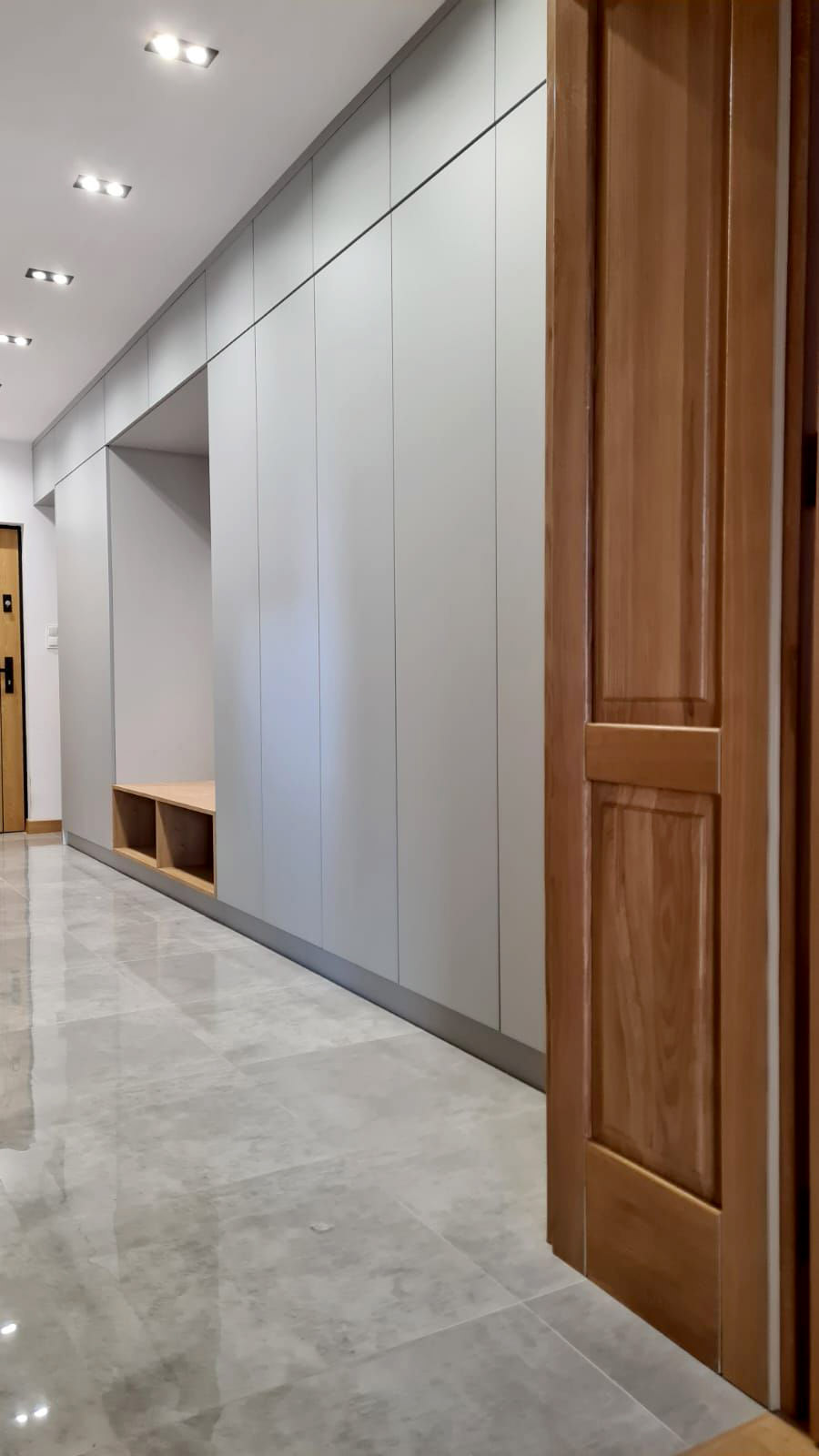Pełen profesjonalizm. Szafa na wymiar do przedpokoju z siedziskiem wykonana tak jak się umawialiśmy. Montaż tydzień później, ale byliśmy informowani.